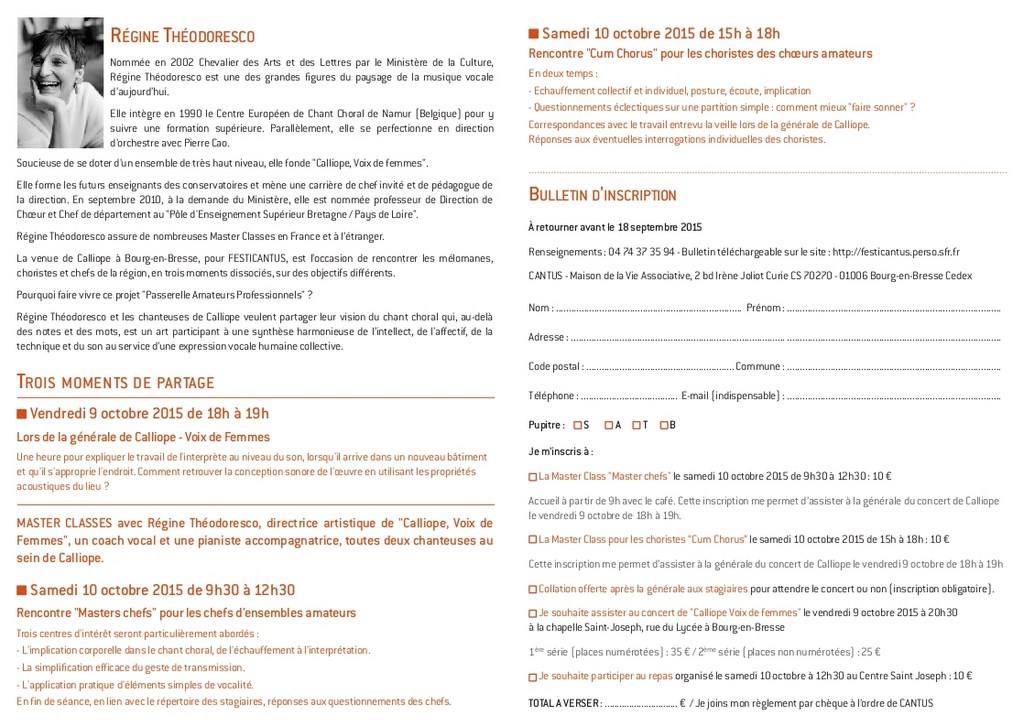 Imprimer le bulletin d'inscription en cliquant sur New! page 2 ou télécharger la FICHE INSCRIPTION MASTER CLASS